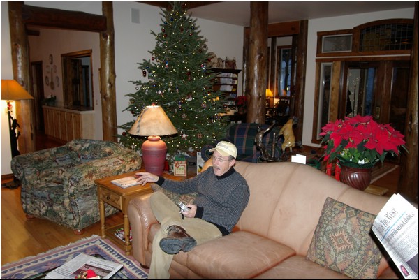 Gordon in the main room of the Tahara Mountain Lodge, Estes Park